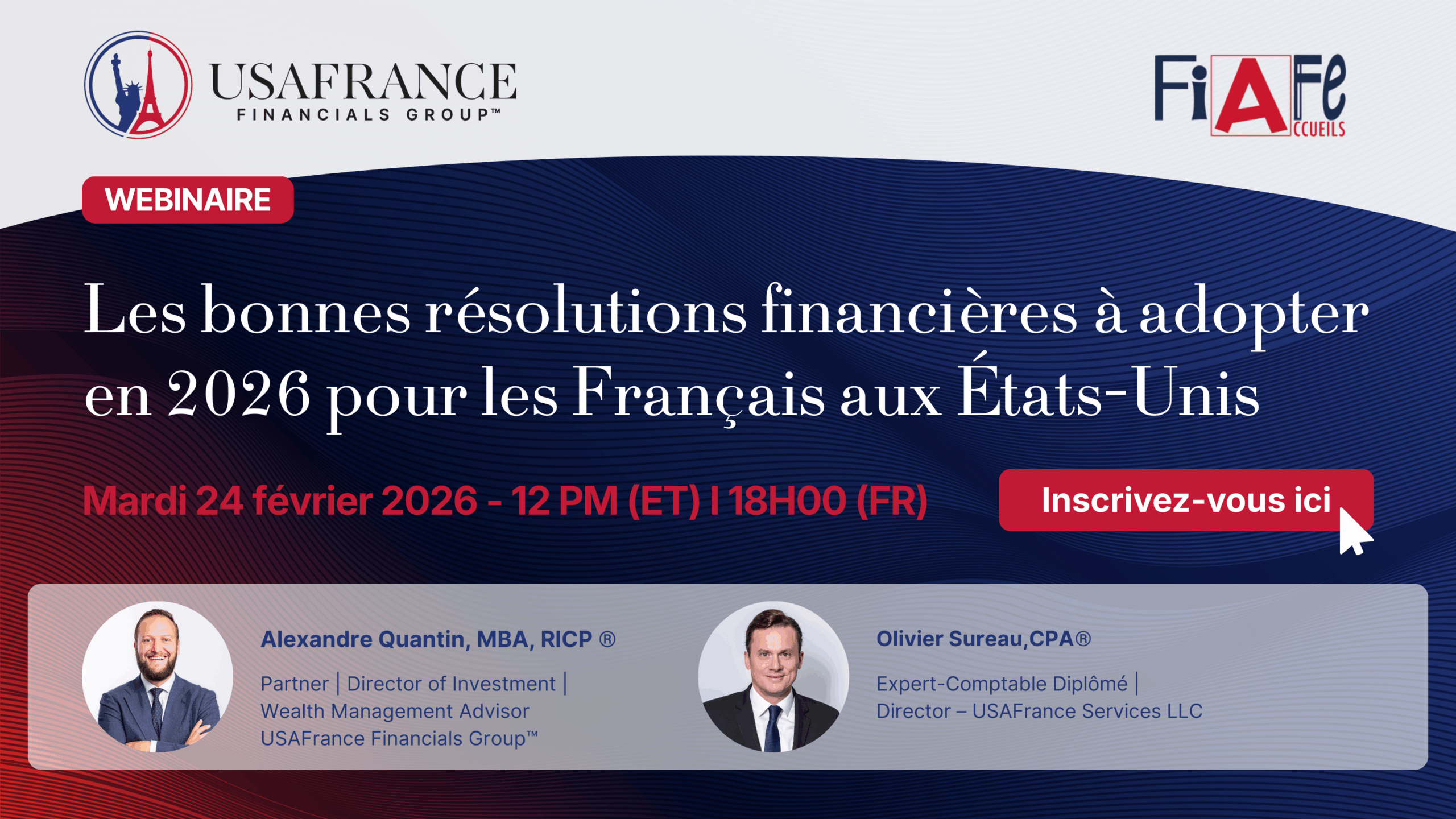 Grâce à une expertise franco-américaine reconnue, les équipes de USAFrance Financials Group™ proposent des solutions adaptées aux enjeux patrimoniaux, fiscaux, entrepreneuriaux et successoraux rencontrés par leurs clients aux États-Unis. »