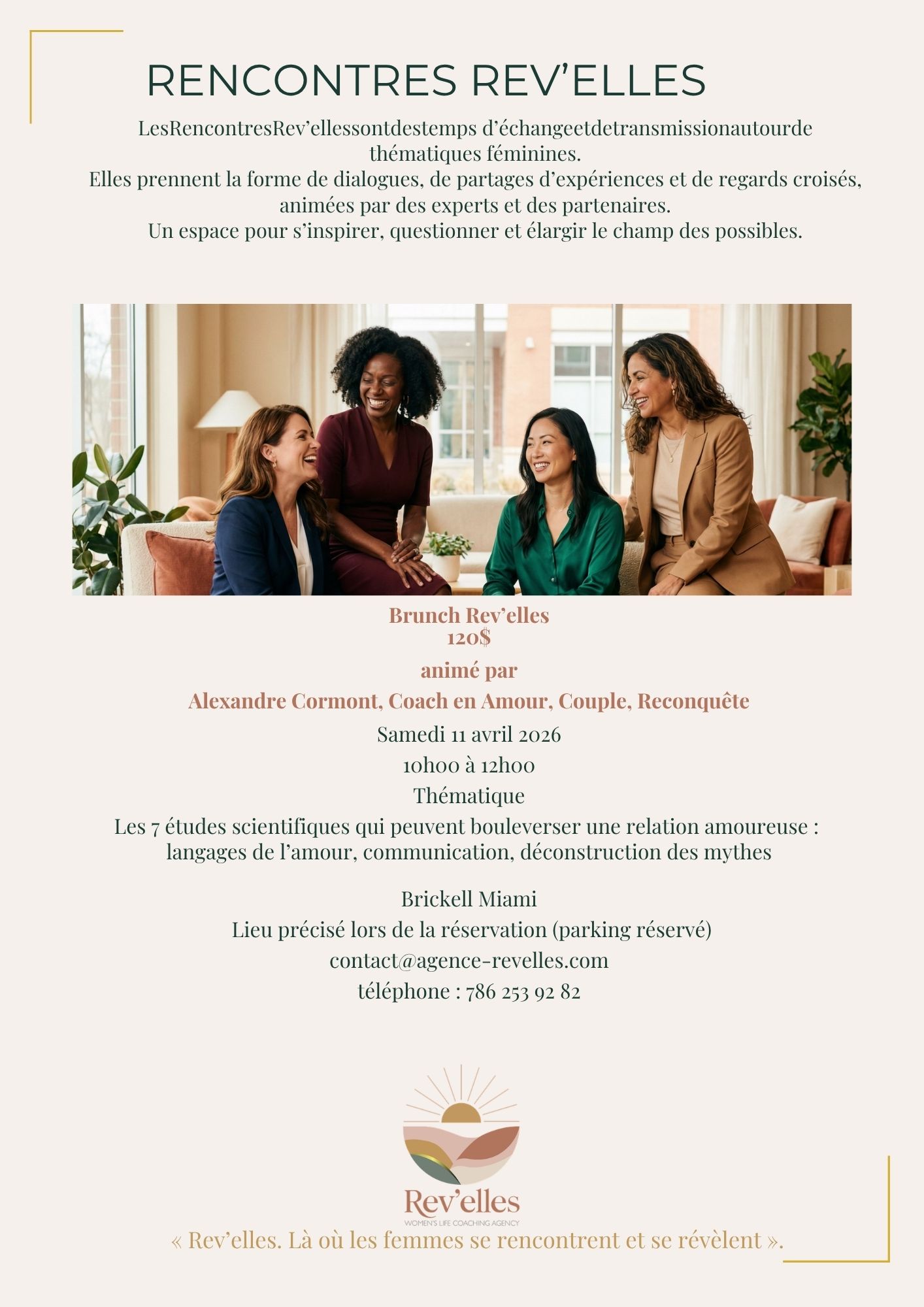 Dans un cadre intimiste à Brickell, ce brunch vous propose d’explorer les dynamiques des relations amoureuses à travers une approche à la fois scientifique et profondément humaine.