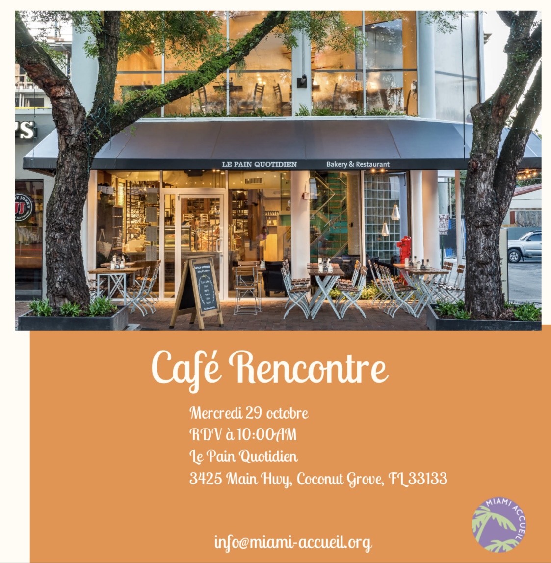 Chantal nous donne rendez-vous au « Pain Quotidien » pour un moment de partage et de convivialité. Ce café rencontre sera l’occasion idéale d’accueillir les nouveaux adhérents et de retrouver les anciens. Venez faire de belles rencontres et profiter d’un moment chaleureux tous ensemble!