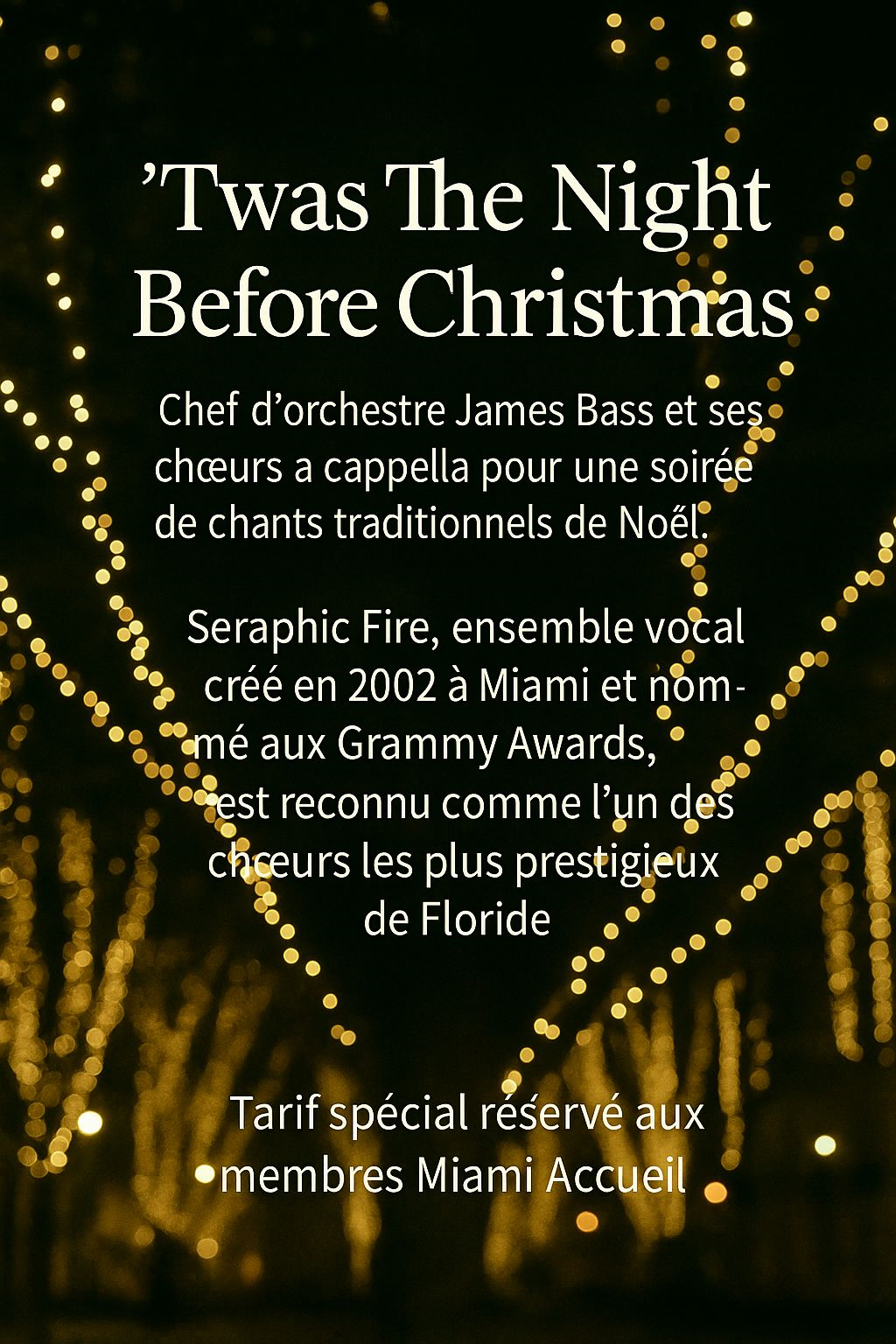 Plongez dans la magie de Noël avec un concert exceptionnel dirigé par James Bass, accompagné de ses chœurs a cappella pour une soirée musicale chaleureuse autour des chants traditionnels.